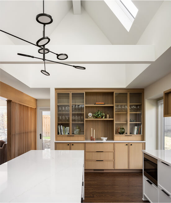 This main level renovation was all about creating a brighter, more connected space for a family of four—starting with the heart of the home: the kitchen. While the original kitchen was functional, it felt closed off and dated. By reworking the layout and vaulting the ceiling, the space was opened up both physically and visually, allowing light to pour in and making everyday moments feel a bit more special.